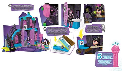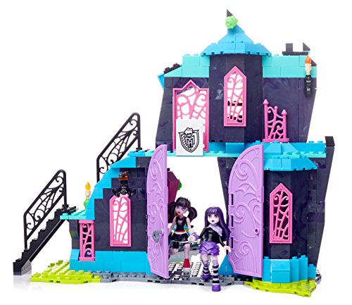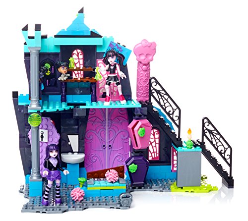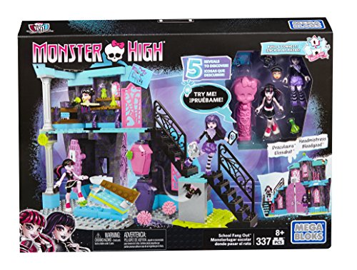 -. Binding : Toy -. Brand : Mega Bloks -. EAN : 0887961318944 -. Feature : Buildable Monster High with four unique areas! / Black light skullette reveals 5 hidden secrets on the walls of Monster High / Buildable lounge area with table, working doors, and a button-activated bench that reveals secret storage for iCoffins / Buildable locker area with a swiveling locker that reveals Draculaura's pet bat Count Fabulous / Buildable Headmistress Bloodgood's office, with the Headmistress' head, and a computer desk that flips to reveal a secret microphone -. Label : Mattel -. Manufacturer : Mattel -. Model : DPK34 -. MPN : DPK34 -. PackageQuantity : 1 -. PartNumber : DPK34 -. ProductGroup : Toy -. ProductTypeName : TOYS_AND_GAMES -. Publisher : Mattel -. ReleaseDate : 2016-04-13 -. Studio : Mattel -. Title : Mega Bloks Monster High School Fang Out School Play Set w/Draculaura and Elissabat Dolls -. UPC : 887961318944 -. Warranty : 1 year warranty against manufacturer defects