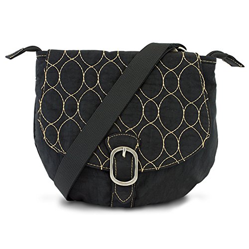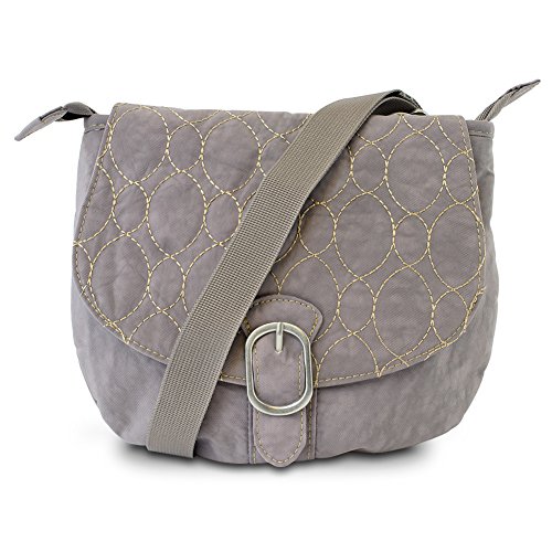 • Stylish bag features a casual crinkle design, gold stitching, and a cute faux buckle