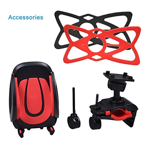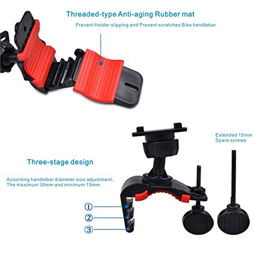 Bike Mount Bicycle Holder - MrPro Universal Cradle Clamp for iOS Android Smartphone GPS other Devices with One-button Released, 360 Degrees Rotatable, Rubber Strap