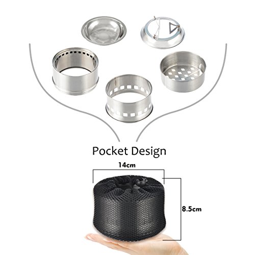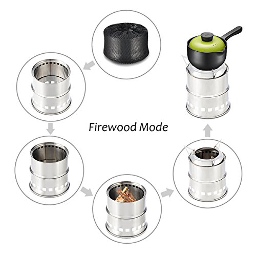 UNLIMITED FUEL SOURCES: No need to buy heavy and costly polluting petrol fuels, white gas or liquid canister fuel again. It Environmentally Friendly! Conveniently use the fuels where you have or easy to get, small branch leaves, twigs, pinecones, and woods can do great works.