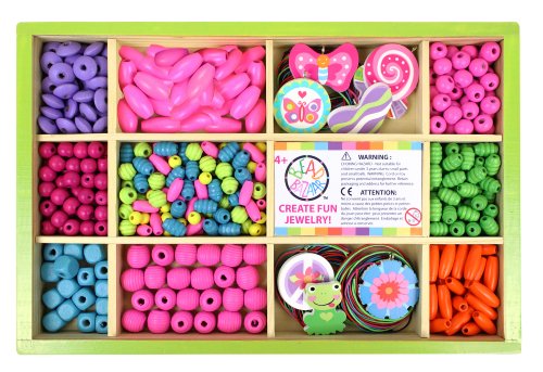 Grab your BFFs and make some one-of-a-kind jewelry with My Big Bead Box from Bead Bazaar. Inside the reusable storage box, you'll find wooden beads in assorted shapes and sizes, chipboard charms, colored cotton thread and instructions for stringing beads. With enough supplies here for up to 15 projects, this kit makes a super activity for a sleepover, a party, or just having fun with your friends. For ages 4 and over. Box measures 8'' x 11'' x 1''. At Bead Bazaar, we promote and encourage the healthy development of all children by providing innovative, fun toys that inspire creativity. We are proud to produce some of the most unique, high quality educational toys and bead craft kits you'll find anywhere.Feature