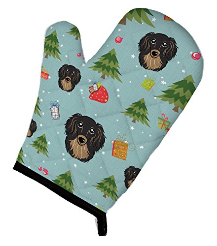 Caroline's Treasures BB5002OVMT Christmas Longhair Black and Tan Dachshund Oven Mitt, 12" by 8.5", Multicolor