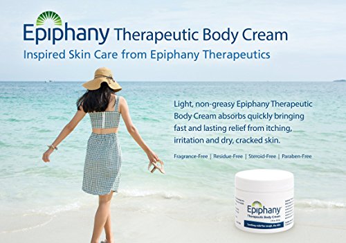 Epiphany Therapeutic Body Cream relives itchy, dry skin and skin irritation, including Psoriasis and skin rash.
