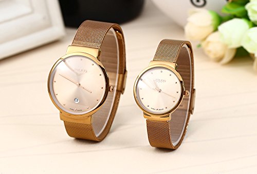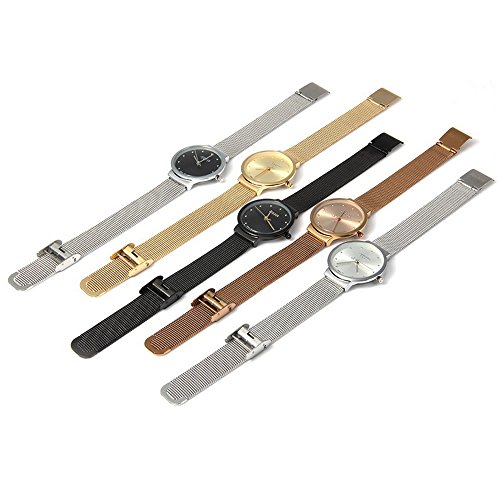 Premium brown-tone stainless steel elegant watch features easy reader diamante hour markers quartz analog display. Strong and sturdy stainless steel back cover keeps 99 feet water resistant; the clasp is adjustable as different wrist size you wish. Only one easy operation button help to set time. The fashionable elegant style is your best outfit for many occasions.