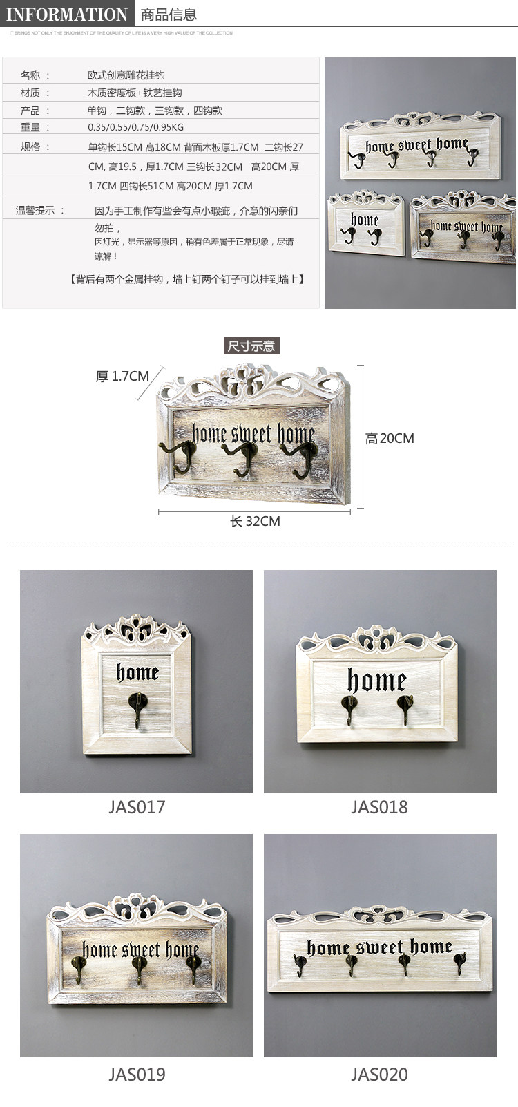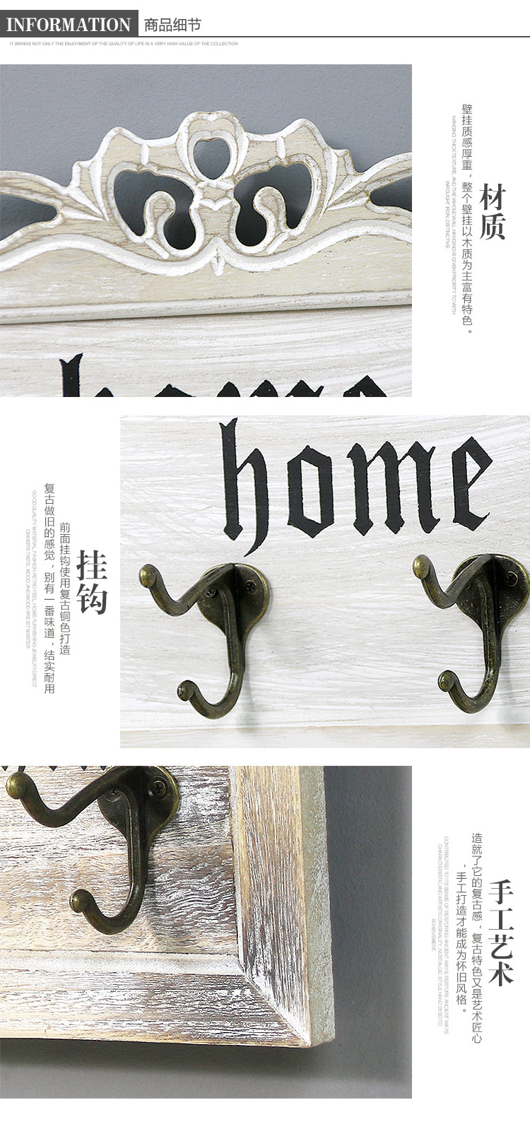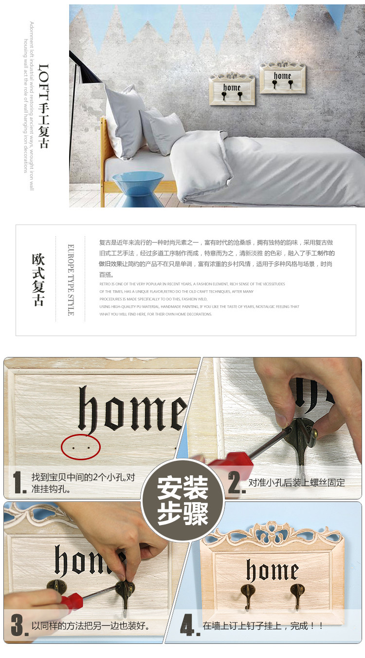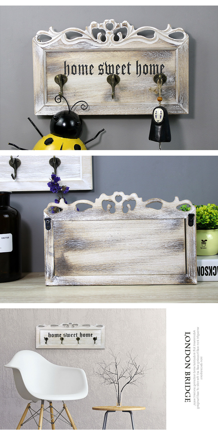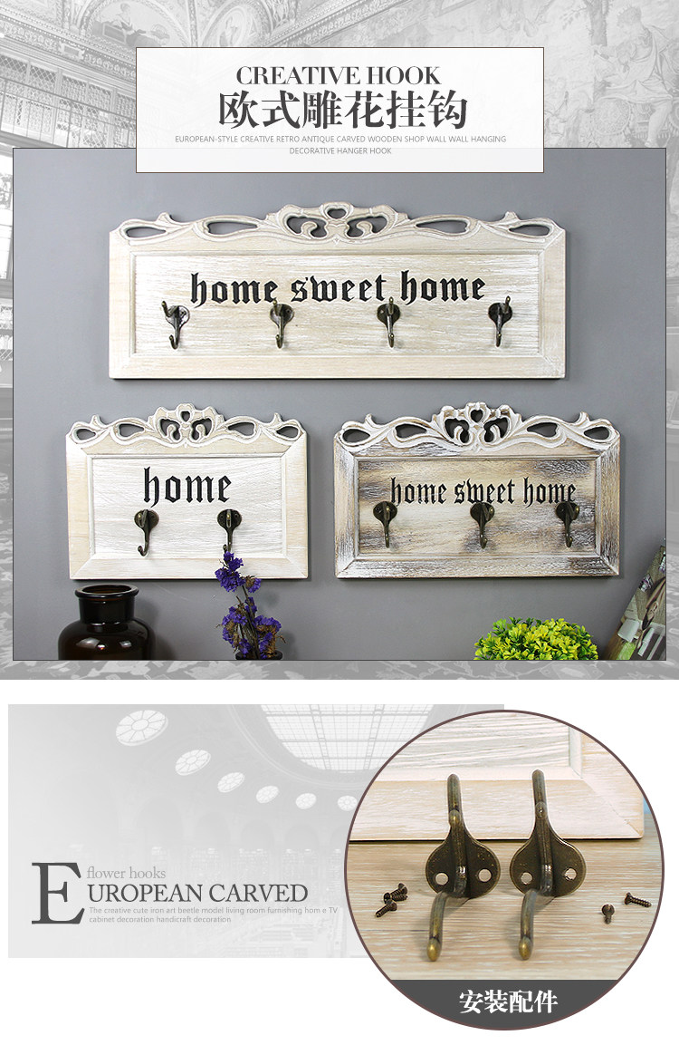 木质钥匙挂钩欧式玄关创意门口置物架复古雕花墙面壁挂装饰挂衣钩