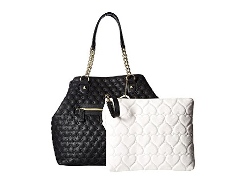 You'll never fall into a style rut with the Betsey® Johnson Trap Tote. Made of synthetic leather. Magnetic snap closure. Additional zipper bag included. Dual flat carry handles with chain detail. Exterior features a color block design, quilted, detail, zip pocket at front, and polished hardware. Flat base. Lined interior flaunts a back wall zip pocket and two slip pockets. Imported. Measurements: Bottom Width: 13 in Depth: 8 in Height: 12 1⁄2 in Strap Length: 23 in Strap Drop: 8 1⁄2 in Weight: 1 lb 10 oz This product may have a manufacturer's warranty. Please visit the manufacturer's website or contact us at warranty@support.zappos.com for full manufacturer warranty details.Feature