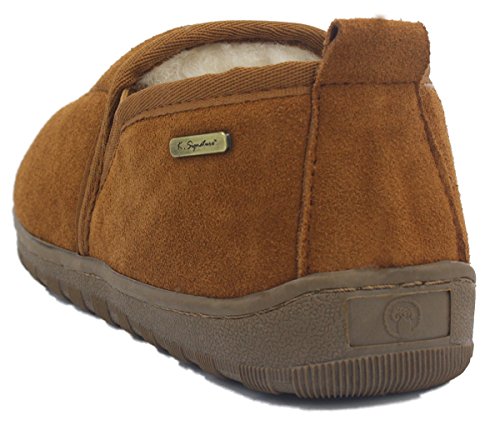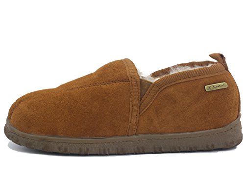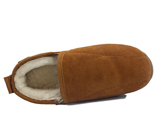 -. Feature : Genuine suede leather upper / Fully lined with moisture-wicking genuine sheepskin for ultimate comfort / Genuine Sheepskin padded Footbed / Metal Logo Signature. / Improved Traction TPR Sole for indoor and outdoor