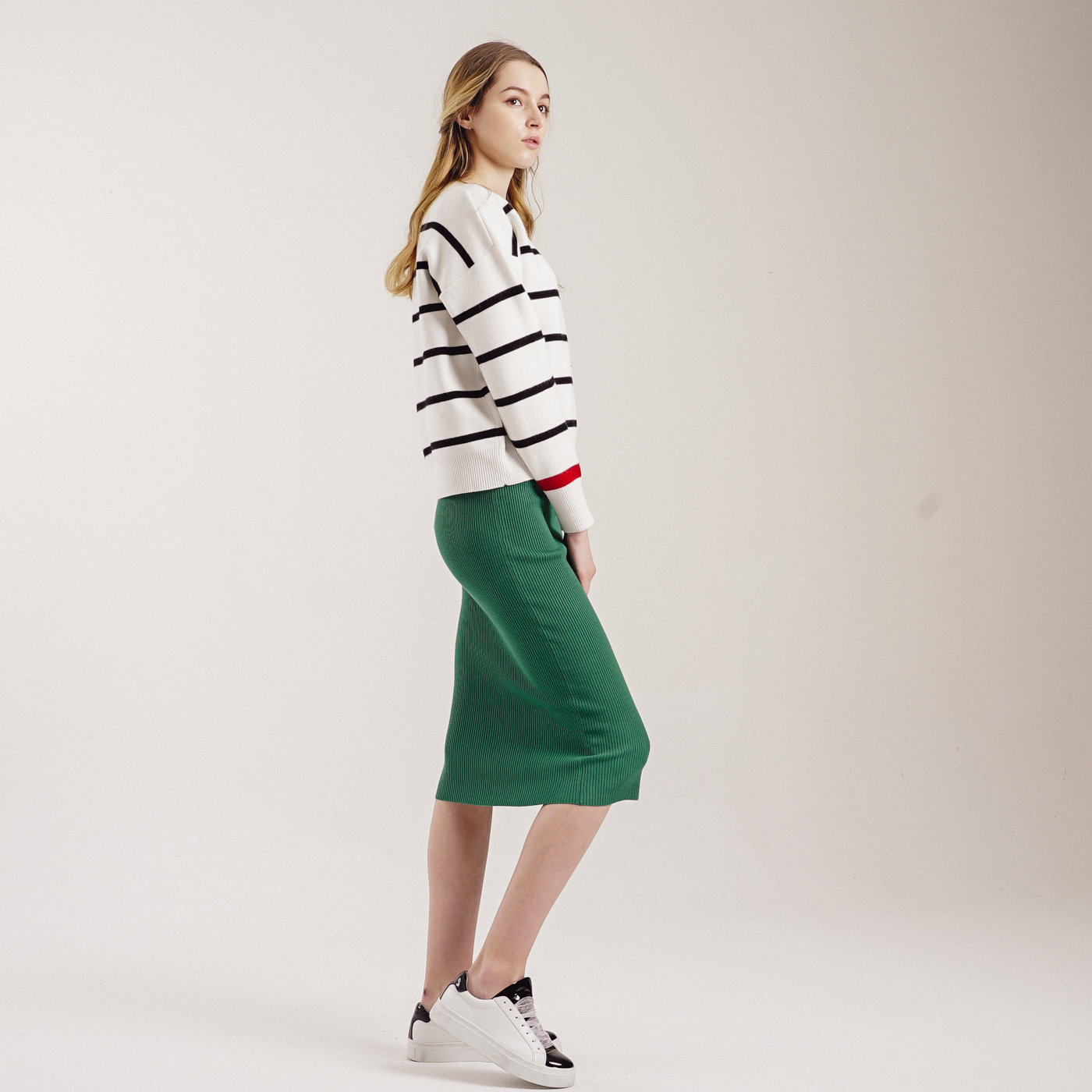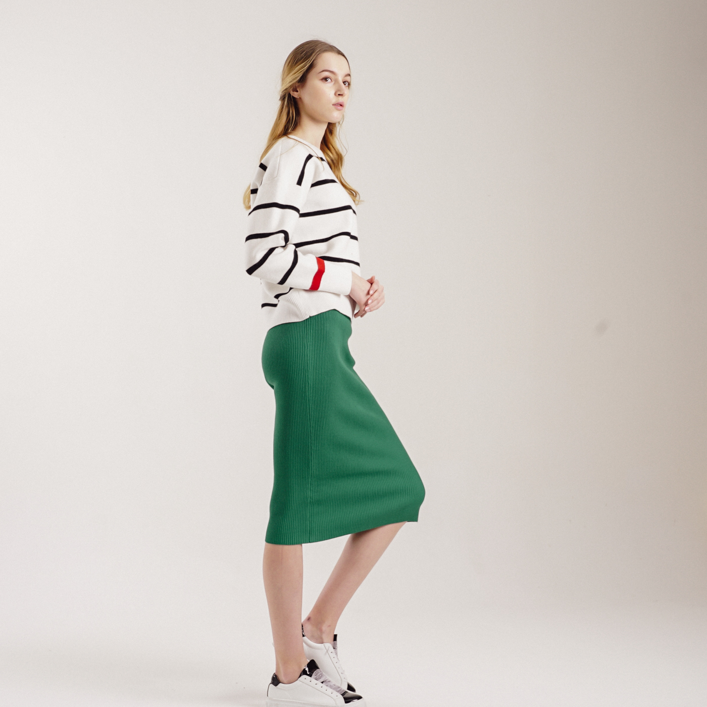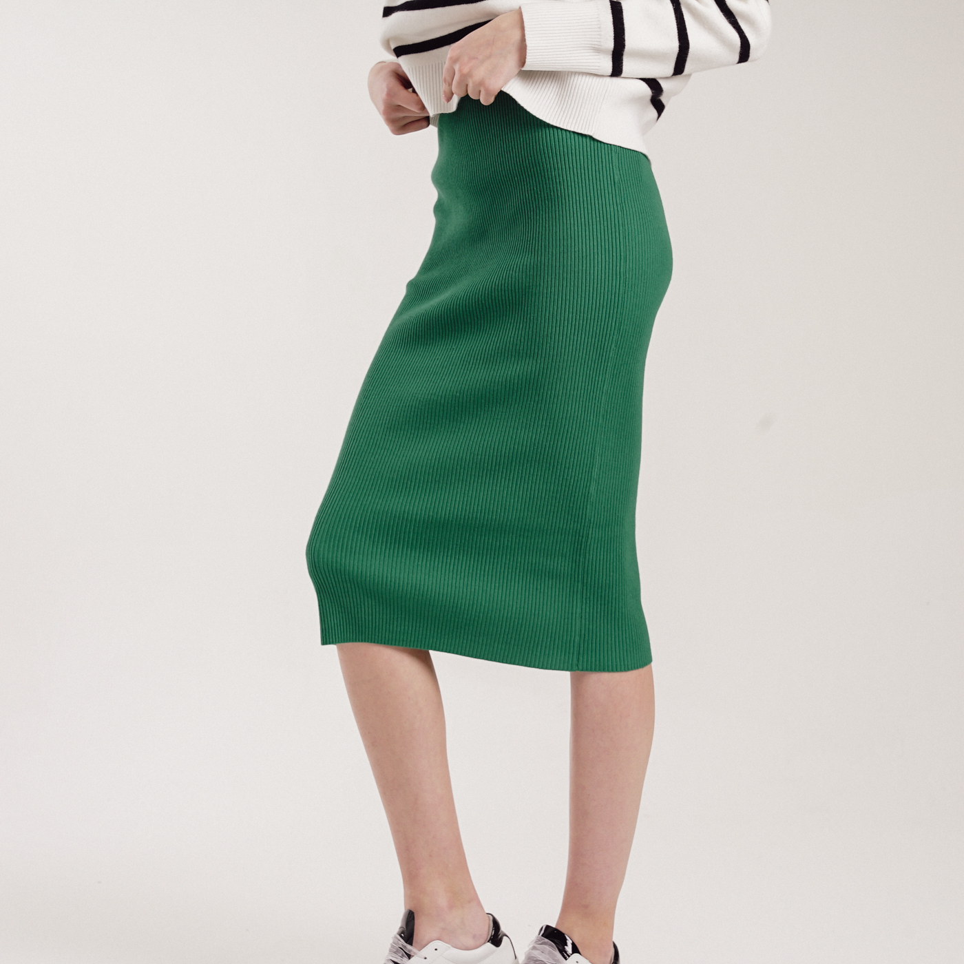 컬러감이 예쁜 기본형 미디스타일 니트스커트입니다.