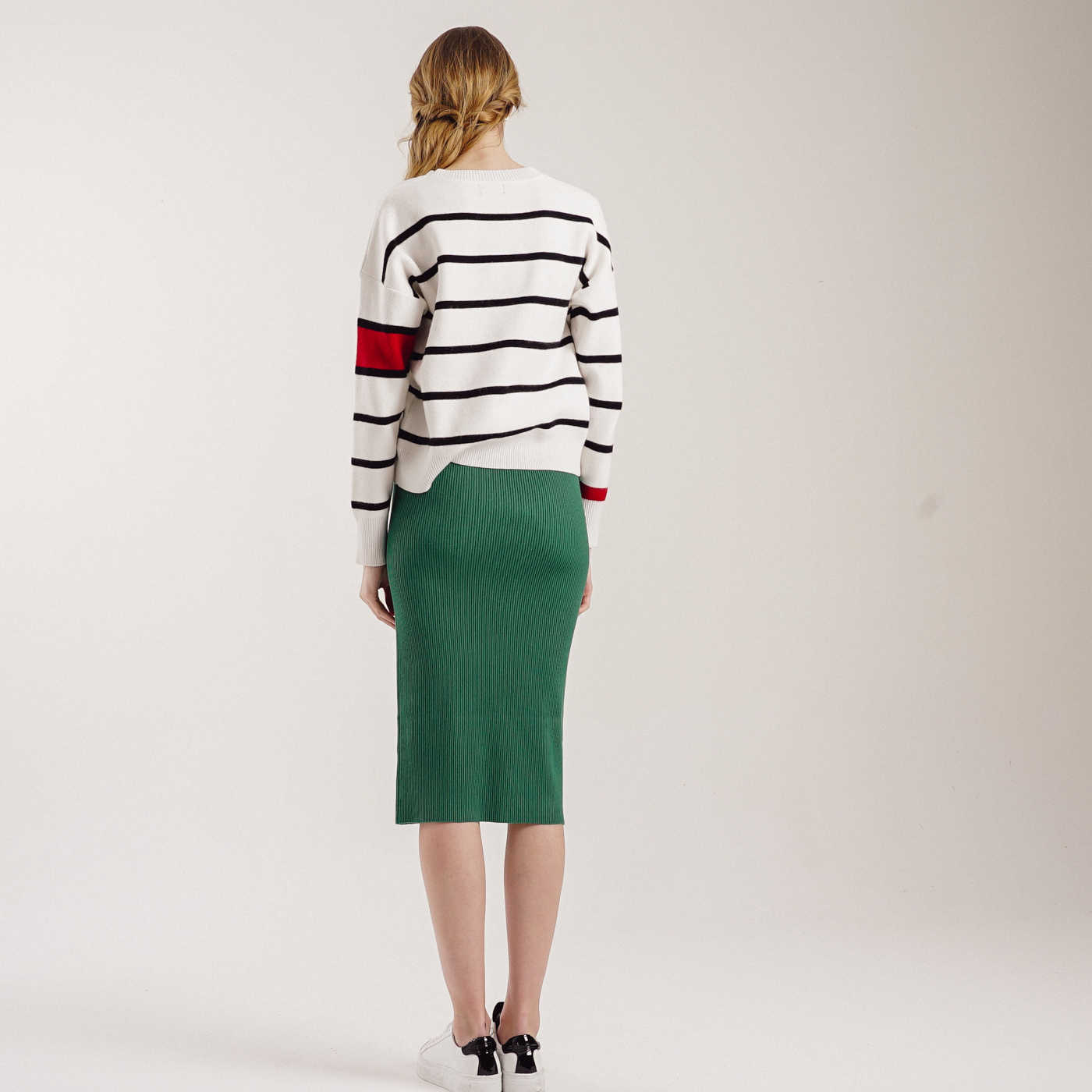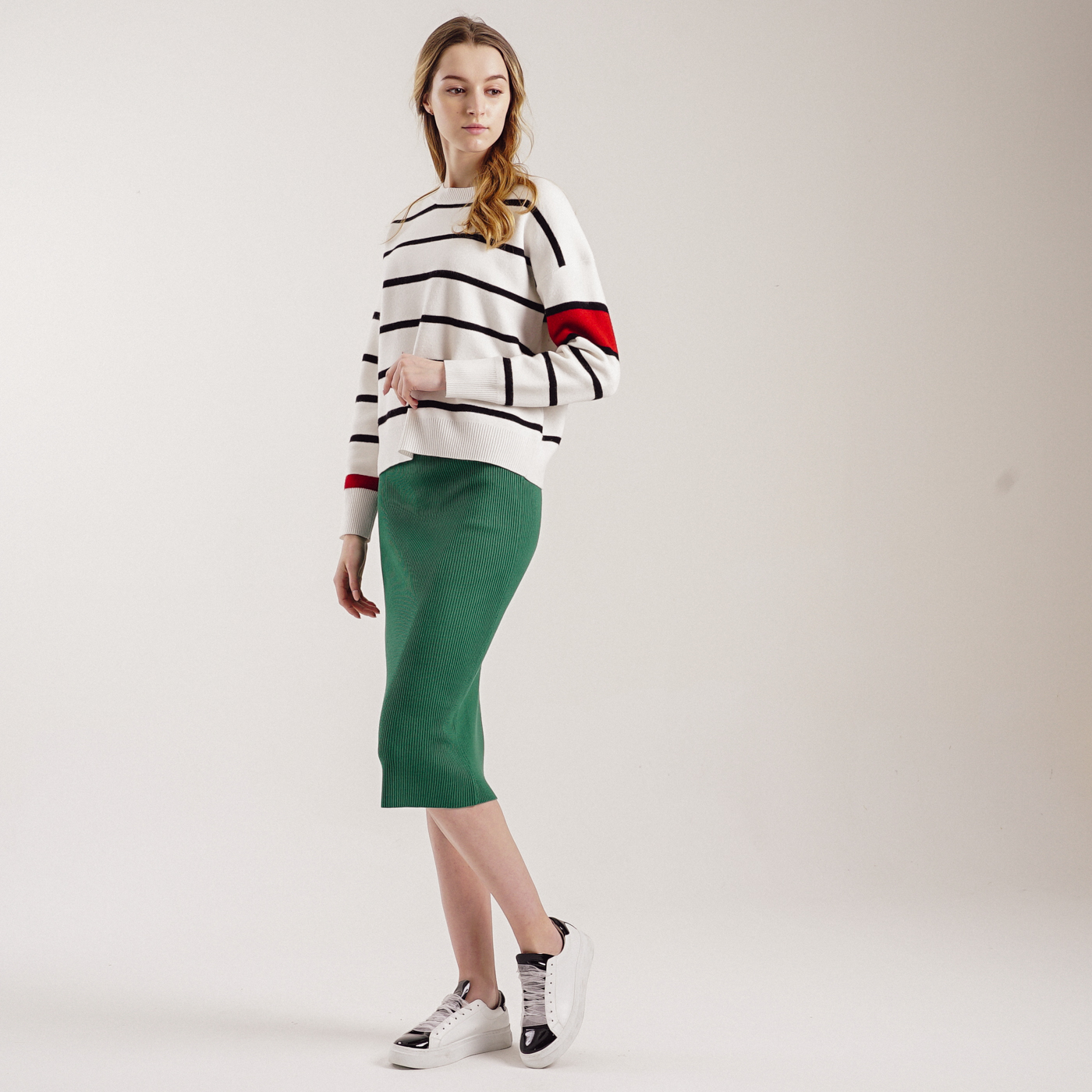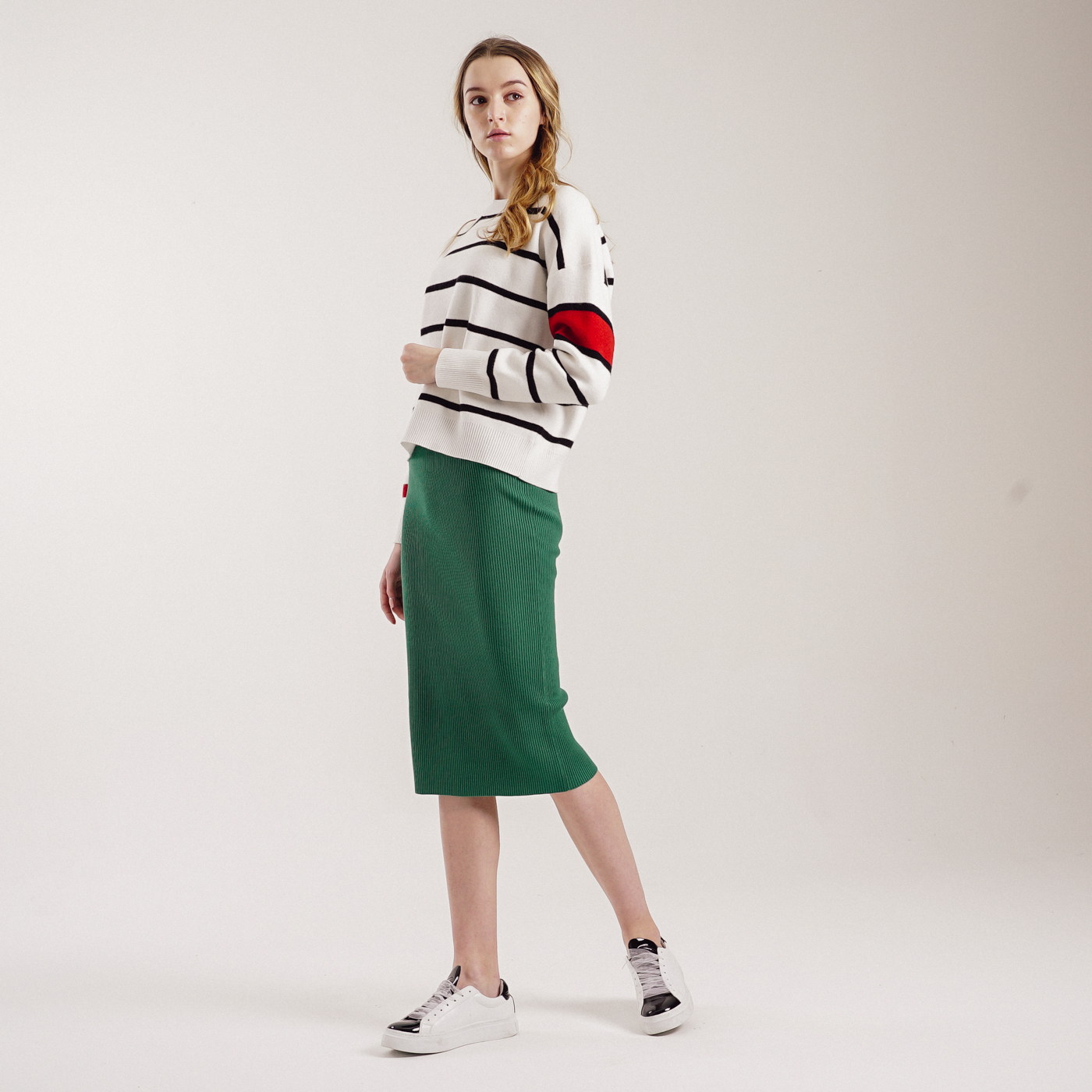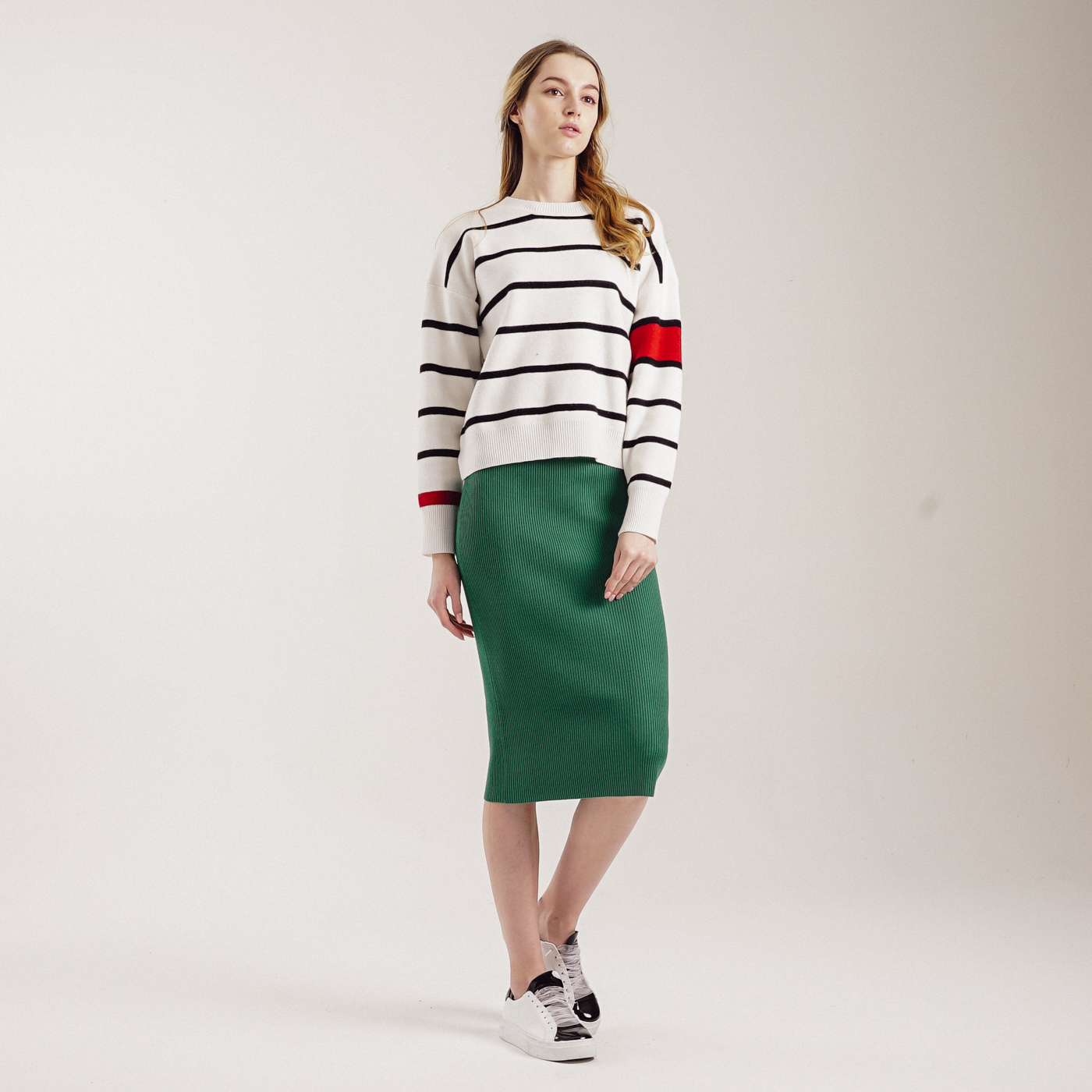 컬러감이 예쁜 기본형 미디스타일 니트스커트입니다.