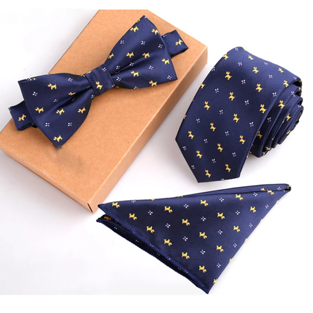 | [해외]2016 noeud 빠삐용 남성 앙상블 네이비 블루 넥타이 노란색 개 나비 넥타이 손수건 세트 많은 |