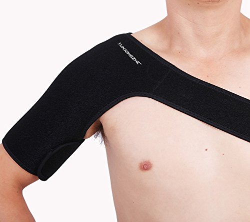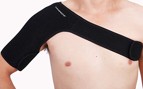 -. Feature : Antimicrobial cloth, sponge, lycra, anti-bacterial SINGLE shoulder support. / Effective warming support for the treatment and prevention of injuries to the shoulder / Lightweight with good moisture wicking and air permeability, perfect for everyday wear. / Adjustable velcro strapping helps provide an anatomically correct fit, ensuring proper support. / Size: Adjustable belt: 90 cm / 35.4 inch; Biceps: 38 cm / 15.0 inch; Width: 28 cm / 11.0 inch.