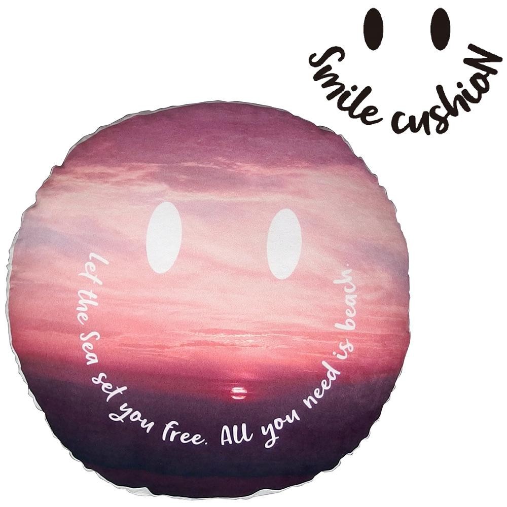 スマイルとビーチの景色が一緒になったクッションです。カバーの取り外しはできません。