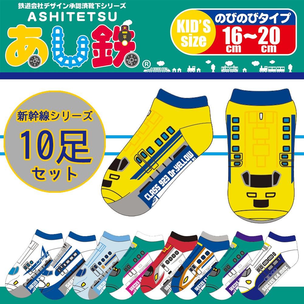 履いたら「列車」になるデザインのキッズソックス。新幹線をモチーフにデザインされた9柄、計10足の靴下がセットになっています。 |