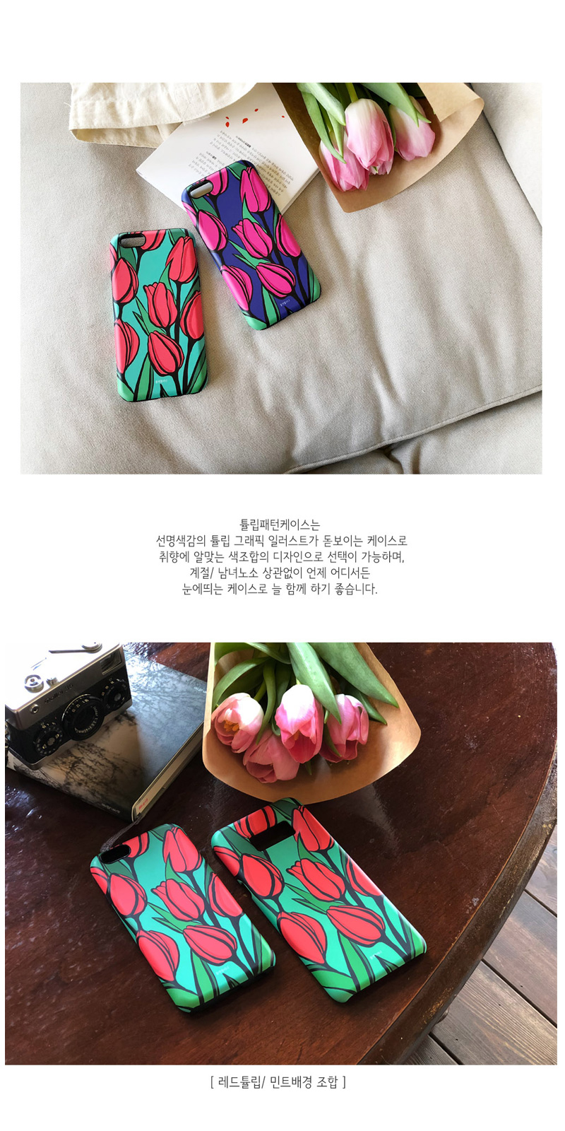 한가득 피어있는 튤립꽃밭이 떠오르게 하는 튤립패턴케이스 입니다.