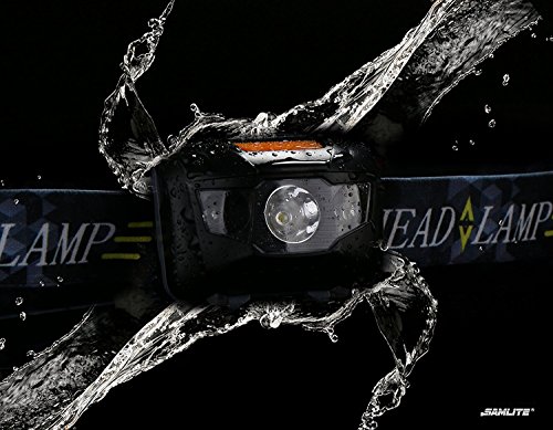 BEST LED Headlamp, 4 Modes, Bright White Light With Red Light, Super Bright, Water Resistant, Perfect For Kids & Adults, Get 2 Free Wristband Reflector, 3AAA Batteries Included (BLACK/ORANGE)- SAMLITE
