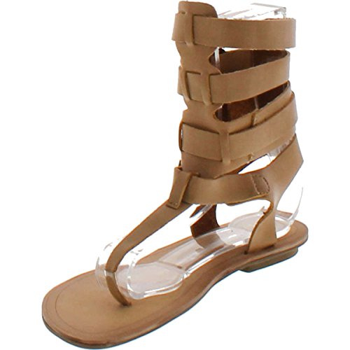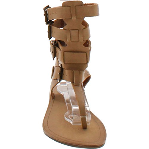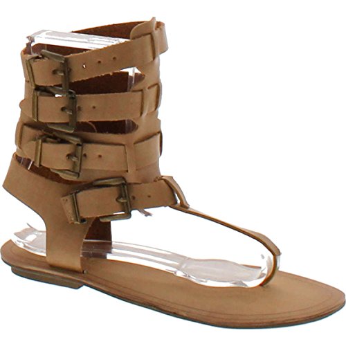Liliana DB52 Women Leatherette Strappy T-Strap Gladiator Thong Sandal - Nude