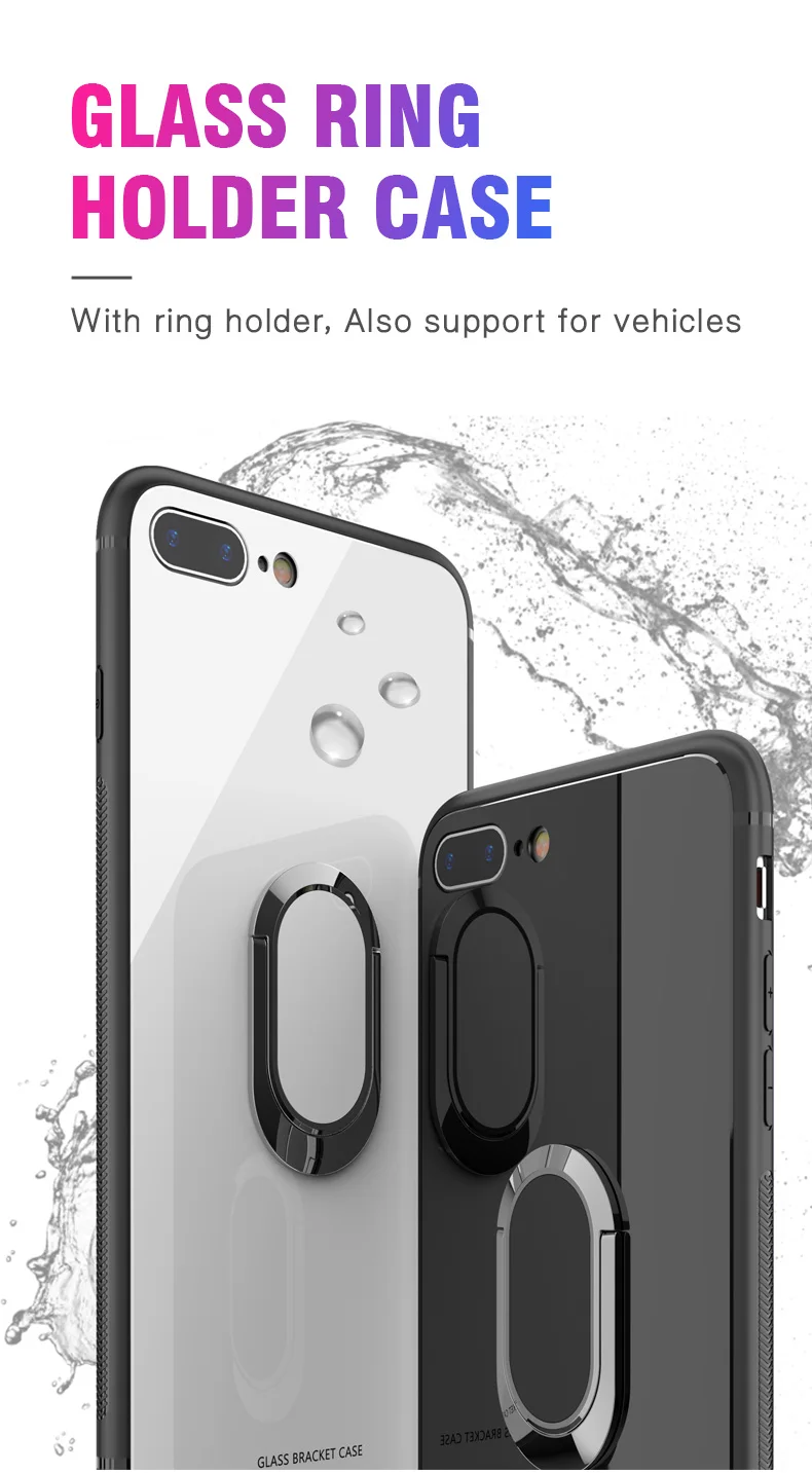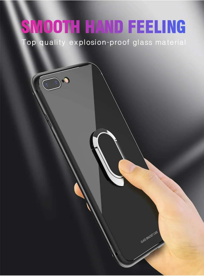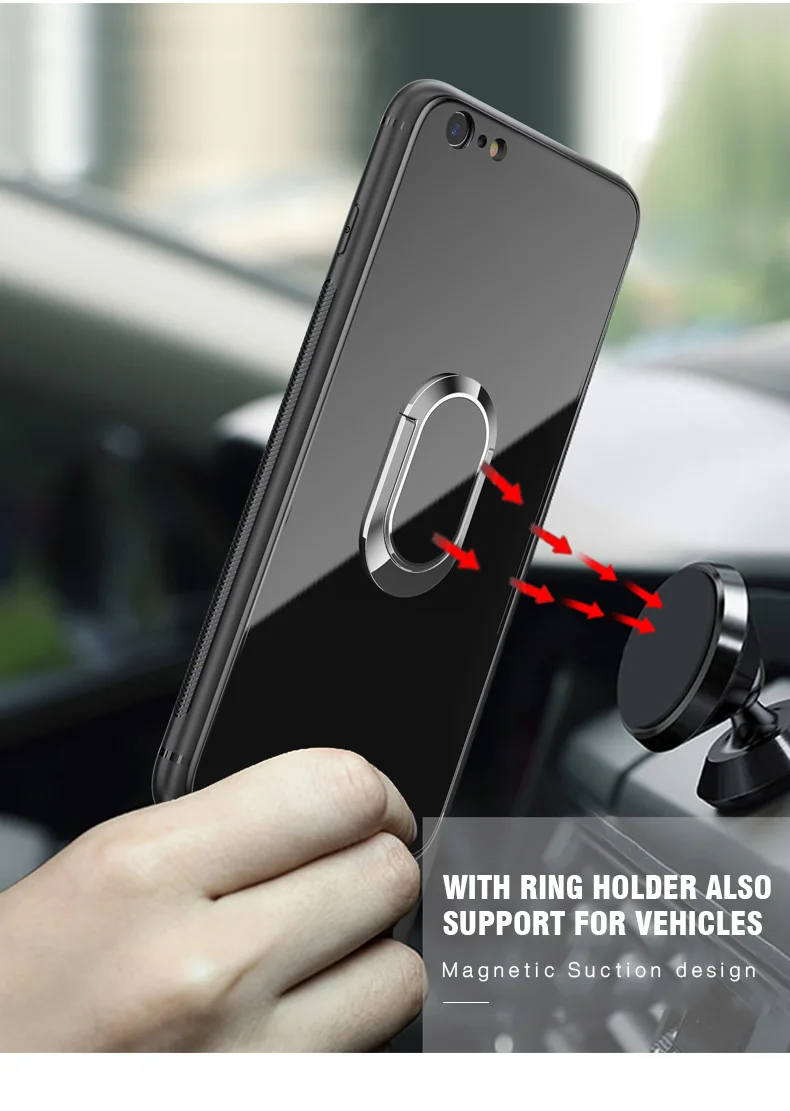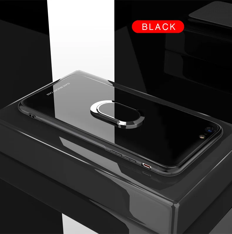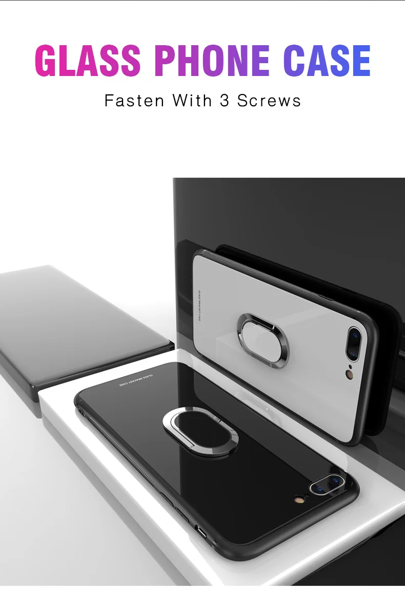 Features:Tempered glass back + ring holder stand+magnetic suction
