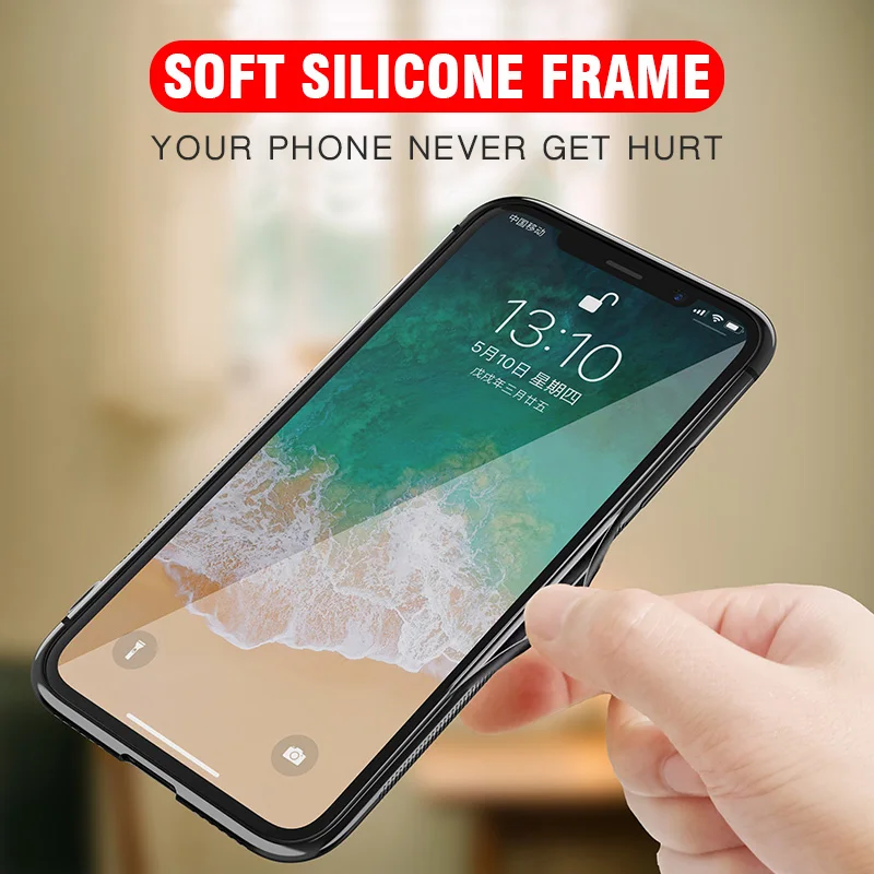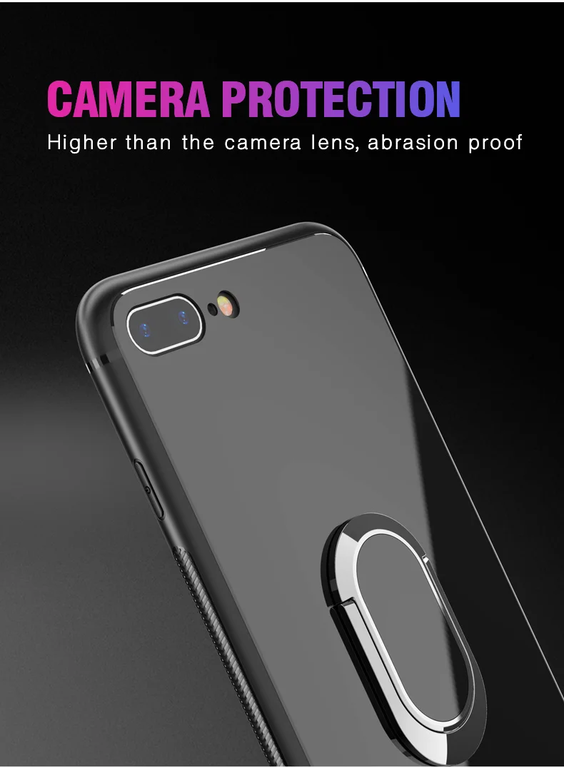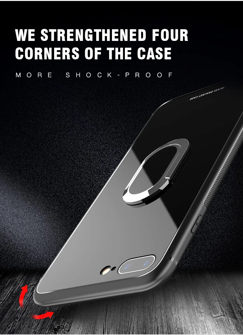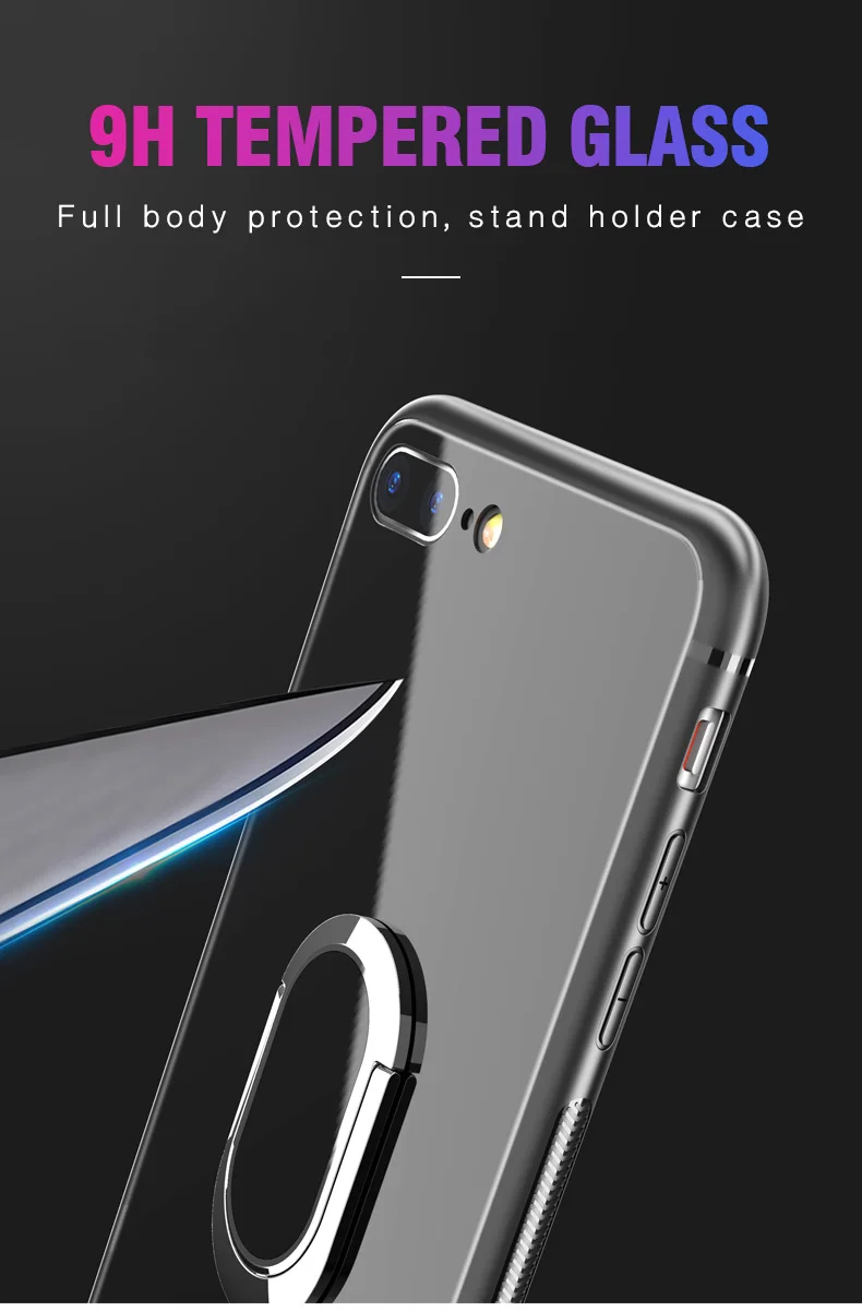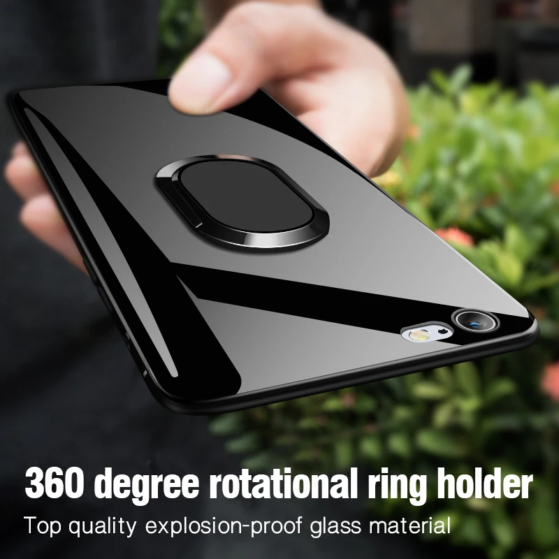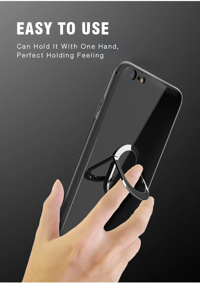 Features:Tempered glass back + ring holder stand+magnetic suction