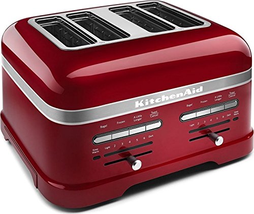-. Brand : KitchenAid -. Feature : Automatic Lift and Lower The automatic lift and lower automatically lowers bread into the self-centering racks upon sensing bread in a slot, then lifts bread as soon as it has reached the selected shade. / Auto Keep Warm The Auto Keep Warm initiates when toast hasn't been removed from the toaster within 45 seconds. Toast automatically lowers to keep warm, for up to three minutes. / Additional Features Auto Keep Warm The Auto Keep Warm initiates when toast hasn't been removed from the toaster within 45 seconds. Toast automatically lowers to keep warm, for up to three minutes. / 7 Shade Settings 7 Shade Settings allow you to choose precisely how light or dark you want your toast. 4 Toasting Functions The 4 toasting functions include bagel and frozen functions with specific heat and time settings, the "A Little Longer" function to give your toast one more shade of darkness and the toast/cancel button to automatically start or stop toasting. -. Label : Kitchenaid -. Manufacturer : Kitchenaid -. PackageQuantity : 1 -. ProductGroup : Kitchen -. ProductTypeName : KITCHEN -. Publisher : Kitchenaid -. Studio : Kitchenaid -. Title : KitchenAid KMT4203 KMT4203 Pro Line Series 4-Slice Automatic Toaster