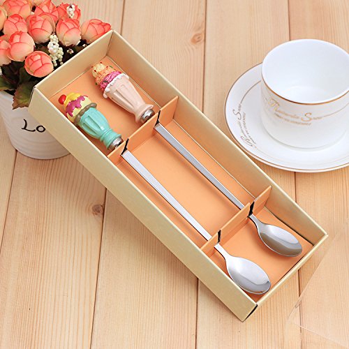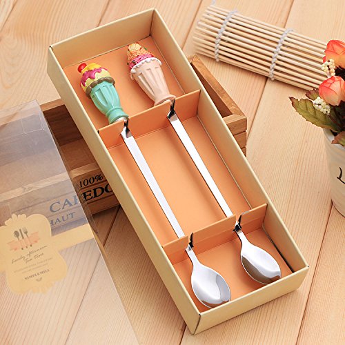 B&S FEEL Long-handled scoop ice cream shape resin handle stainless steel spoon Gift Set