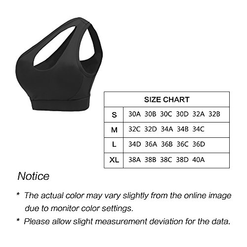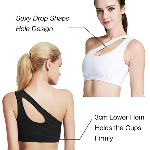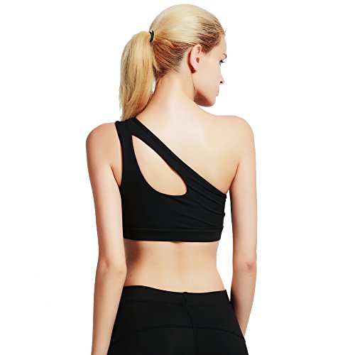 -. Feature : ★CUTE DESIGN- One Shoulder Strap Workout Bra with its high elastic performance, gives you unprecedented flexible and nice fitting at fitness time. / ★RELIABLE FABRIC- Made of 88% Nylon 12% spandex, inner breathable material make the active yoga sports bra tight fitting for support, super comfortable and breathable. / ★WIRELSS WORKOUT BRA- You could wear the fitness workout bra as a bra or a top , the wireless bra and removable padding provides you a better fitting. / ★MORE APPLICATION - Women High Impact sports bras is perfect for most fitness activities such as Workout, Yoga, Walking & Jogging & Running, Cycling, Boxing, Bowling, Boating, etc. / ★SIDE GUIDE: Best Fit For A To C Cups. (S Best Fit For 30A,30B,30C,30D,32A,32B; M Best Fit For 32C,32D,34A,34B,34C; L Best Fit For 34D,36A,36B,36C; XL Best Fit For 36D,38A,38B,38C,38D) Order a size UP if you prefer looser fitting.