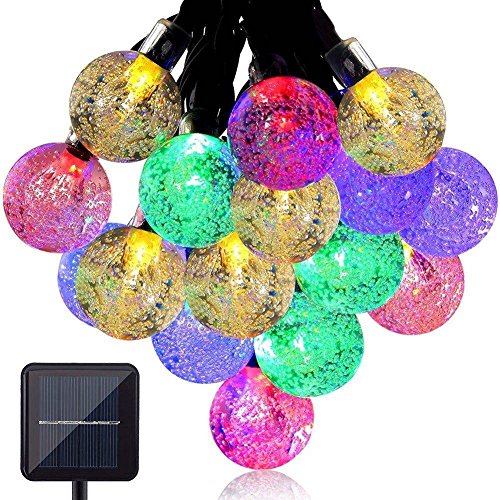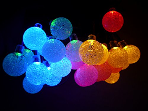 Solar Garden Lights -- High-power Outdoor String Lights With 30 LED Fairy Bubble Crystal Ball Lights For Garden, Patio, Backyard Decoration, 20ft Waterproof Lights Charged by Sunlight (Multi-colored)