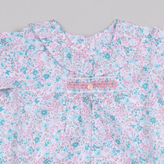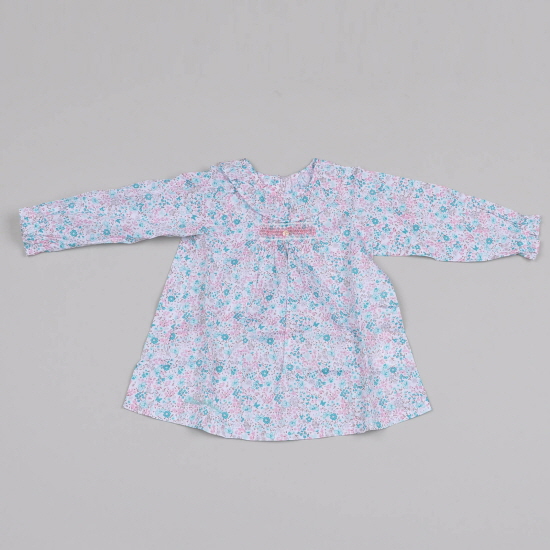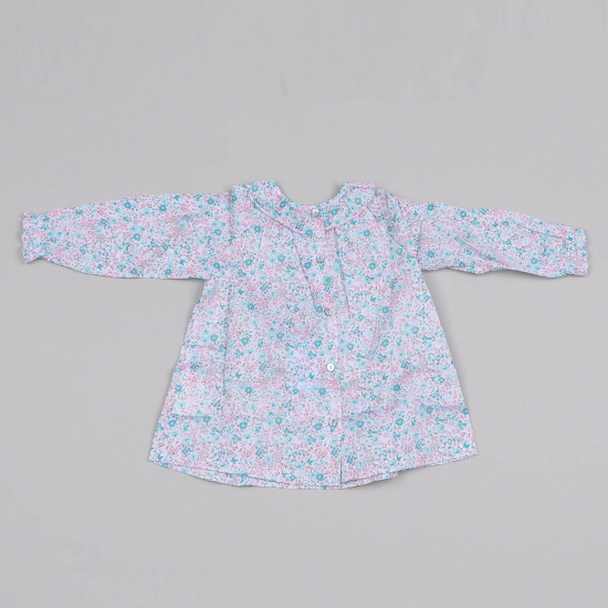- 화사한 꽃나염지에 무늬 스포크로 포인트를 준 여아블라우스입니다