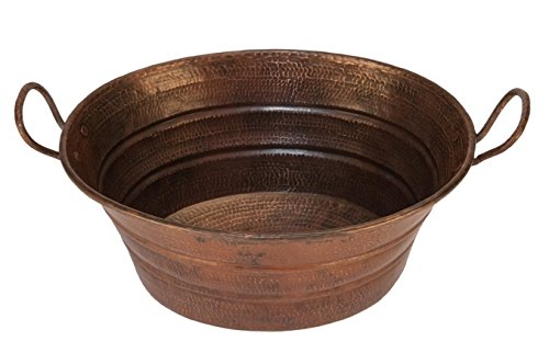Oval Bucket Vessel Hammered Copper Sink with Handles