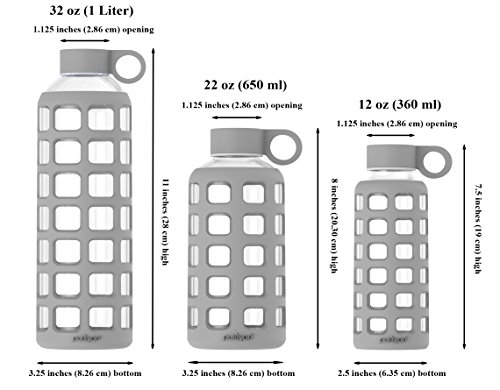 • Our high impact-resistant silicone sleeve also protects your glass water bottle better than any other. The silicone sleeve's non-slip grip and the cap's large O-ring also enable the multi-tasker in you to carry more than you thought possible with just ten fingers.