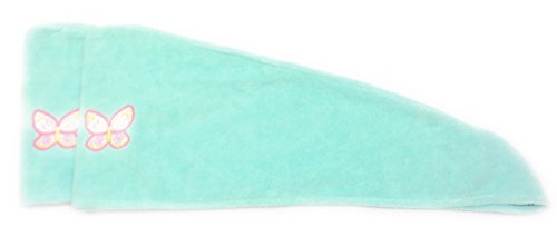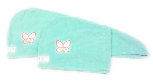 Turbie Twist Microfiber Super Absorbent Hair Towel (2 Pack ) Aqua with butterfly embroidery
