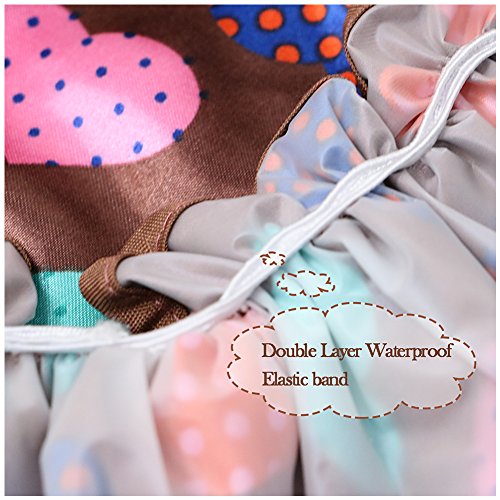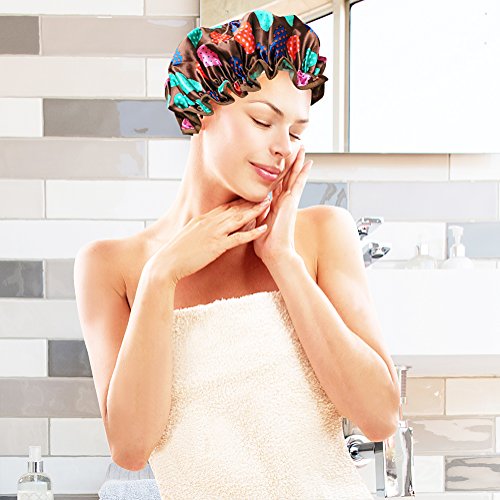 WATERPROOF DESIGN: This shower cap is with double layer waterproof design and eco-friendly EVA waterproof effect is super good. When you are showing, making up, spa and washing your face, it will keep your hair away from water or other make-up effectively.