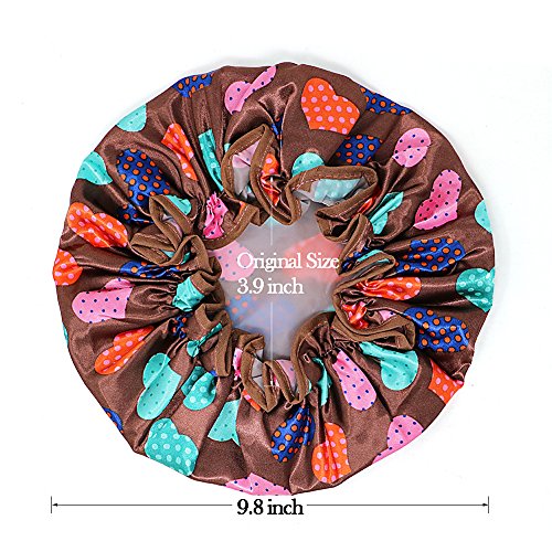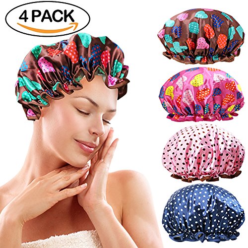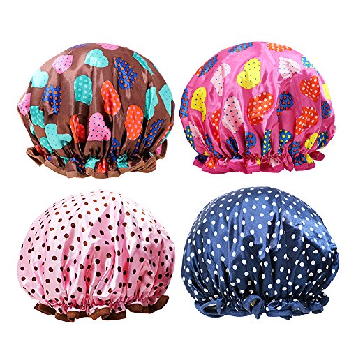 Onshine Shower Cap Double Layer Waterproof Shower Hat Elastic Band Beautiful Color Dot Pattern 4 Pack Fashionable Shower Caps for Women (Heart)