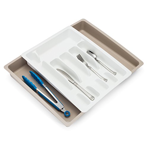 -. Feature : キッチンスペースを最大限活用できる拡張型カトラリートレー。 / 縦38cm、横29.2cm、高さ7.1cm。横幅は47.5cmまで拡張可能。 / お手入れは水、お湯でカンタン。 / 底にストッパーゴムが敷いてあるので、引き出しをあけても動きません。 / 合計8個のスペースにナイフ、フォーク、スプーンやトング、ワインオープナーなど収納可能。