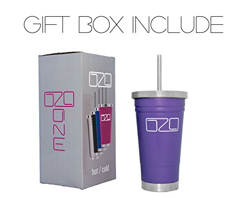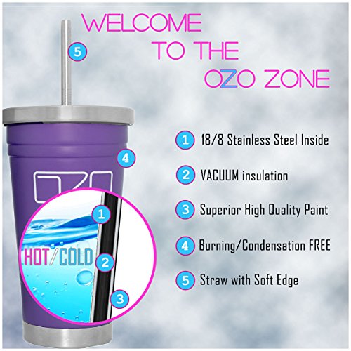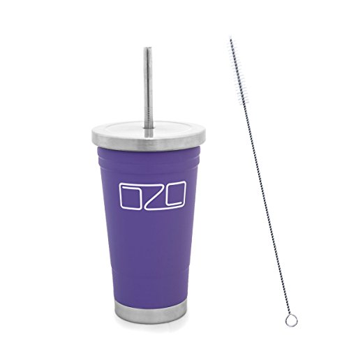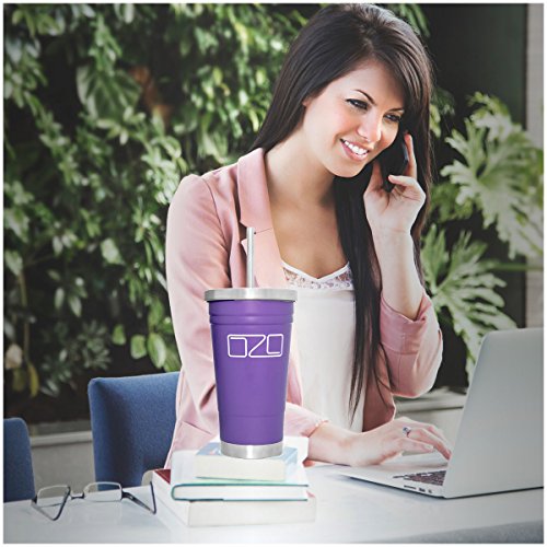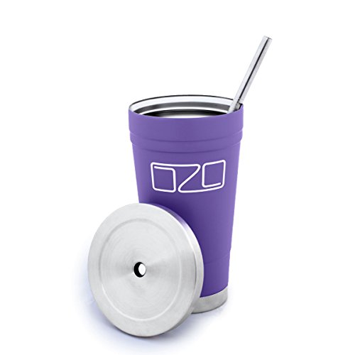 The Tumbler by OZO – Premium Stainless Steel Vacuum Insulated Travel Mug, Hot or Cold Drinks with Straw and Brush, 16oz capacity, in Lavender / Light Purple