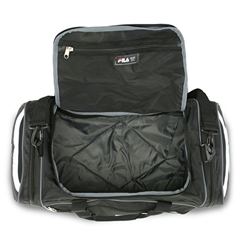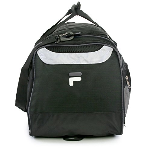 -. Binding : Apparel -. Brand : Fila -. Department : unisex-adult -. Feature : Sport duffel bag made of 600 denier ripstop nylon fabric. Reinforced stitching at all stress points for durability. / Spacious main compartment to fit all your gear for the gym or training. / EXOVENT mesh ventilation pockets. / 2 zippered pockets for side compartment storage. / Detachable, adjustable, and padded shoulder strap. -. Label : Fila Lage -. Manufacturer : Fila Lage -. Model : FL-SD-2825 -. PackageQuantity : 1 -. ProductGroup : Apparel -. ProductTypeName : LAGE -. Publisher : Fila Lage -. Size : One Size -. Studio : Fila Lage -. Title : Fila Acer Large Gym Sport Duffel Bag