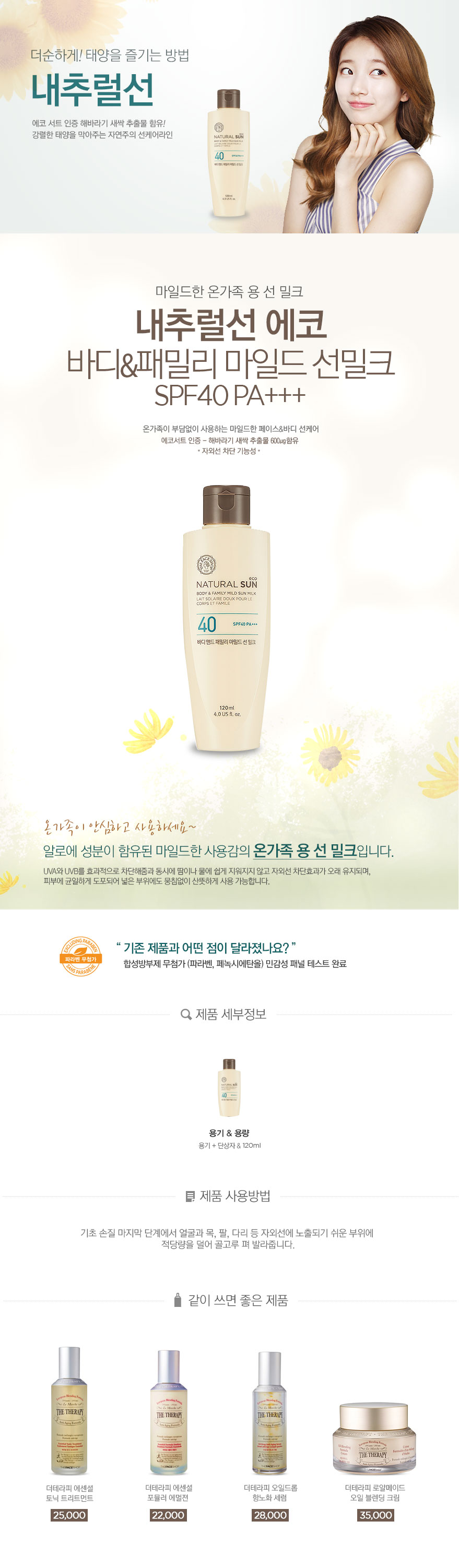 [THE FACE SHOP] Natural Sun Eco Body&Family Mild Sun Milk SPF40 PA+++_120mlCondition : NewCapacity : 120ml