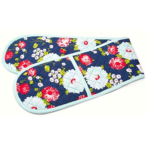 [Product Information]- Designer double oven mitt by Moda Home; Navy colorway