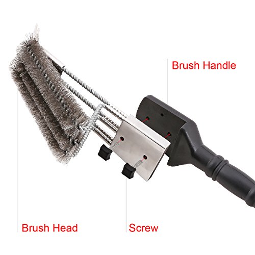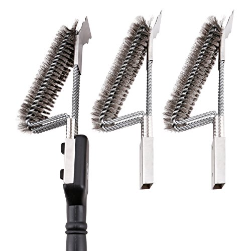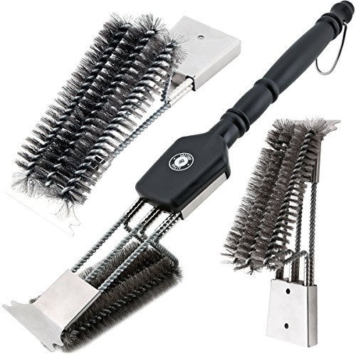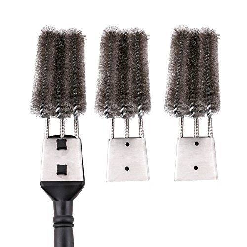 18" Grill Brush With Scraper. UNIQUE 3 REPLACEABLE HEADS DESIGN. Best BBQ Cleaner. Safe For All Grills. Durable Stainless Steel Wire Bristles. A Perfect Grilling Gift For Barbecue Lovers.