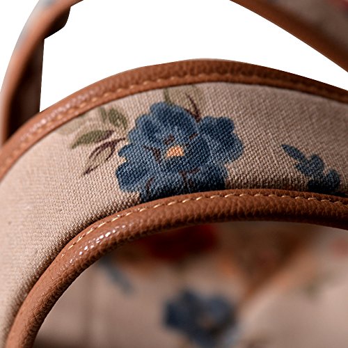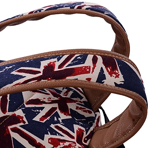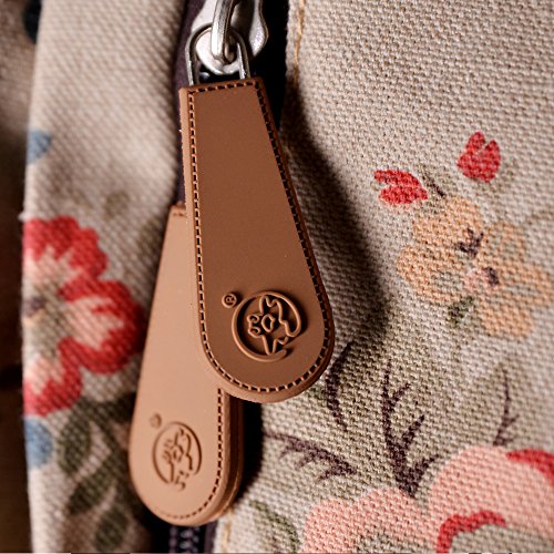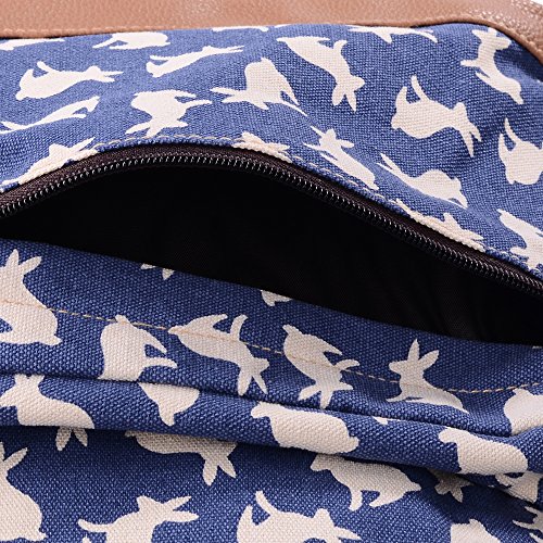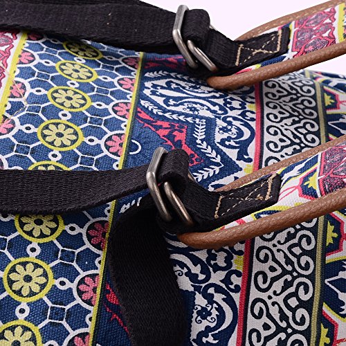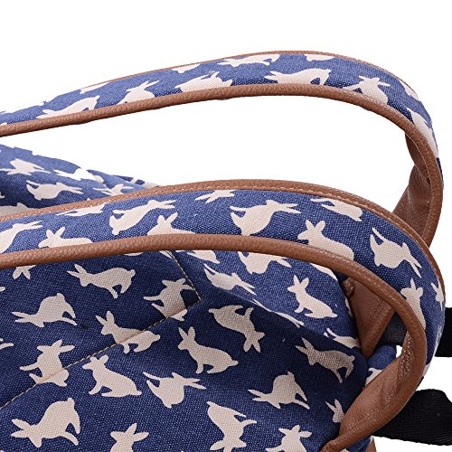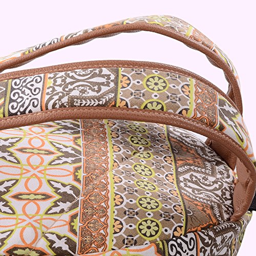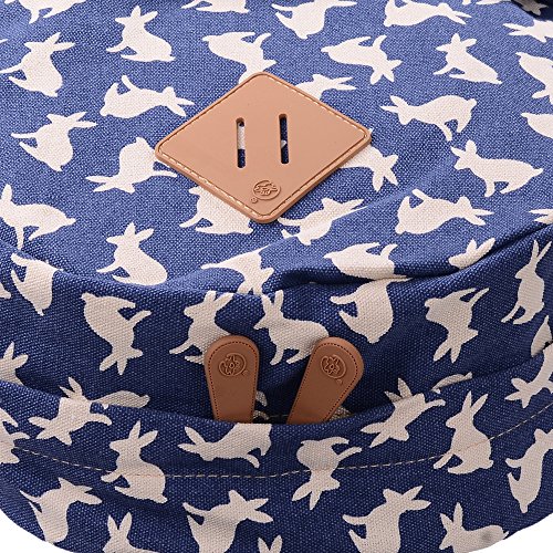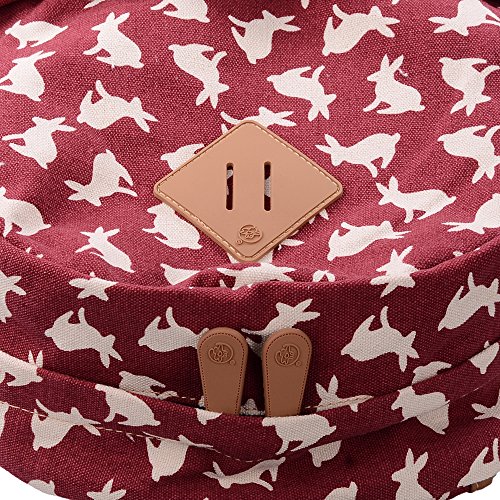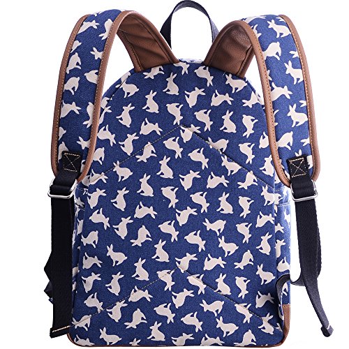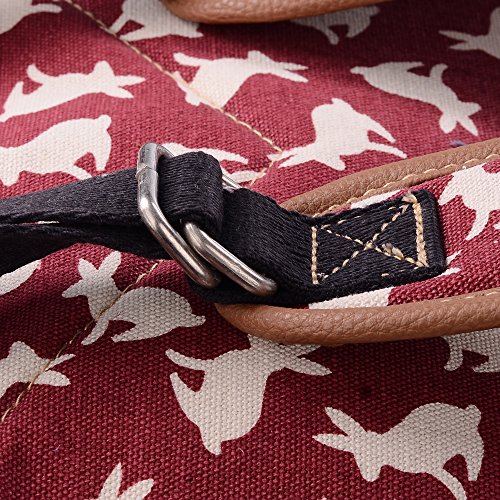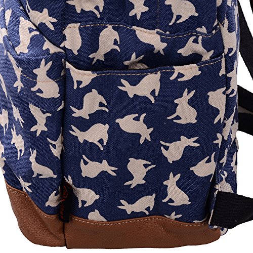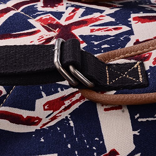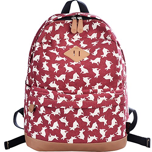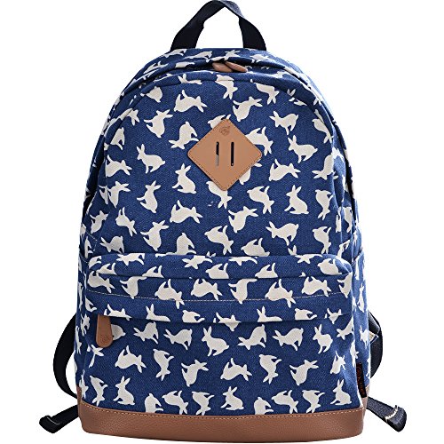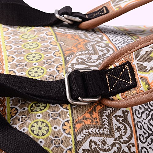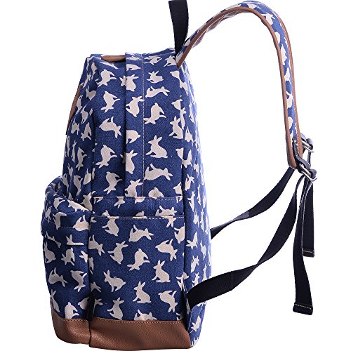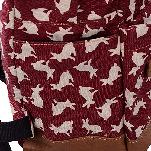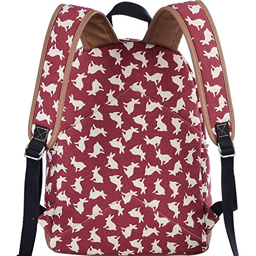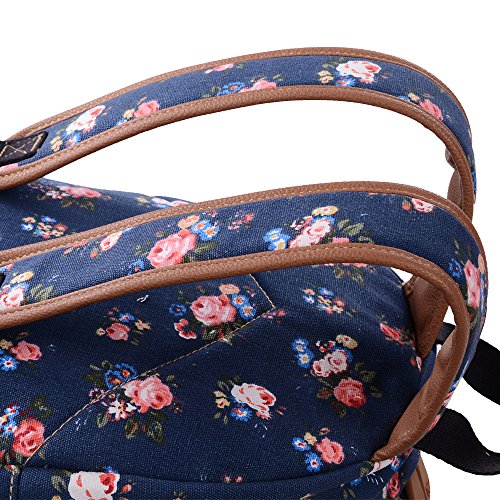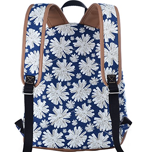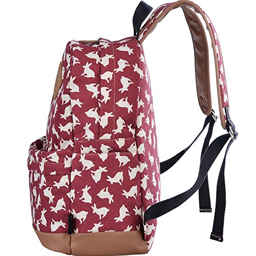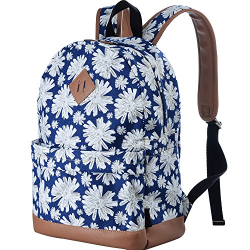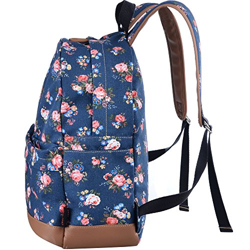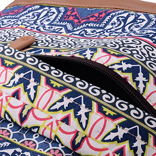 - Feature : Durable and sturdy printing canvas backpack with faux leather bottom / Single carry strap at top with two adjustable shoulder straps for versatility / Spacious main compartment can hold books, clothes, or other daily essentials. / Interior features two slip pockets and two side pockets for organization, the interior laptop sleeve can hold up to a 14-inch laptop / Front zip pocket for additional storage, two slip pockets at sides to hold water bottles or other items for those fun-filled days outside