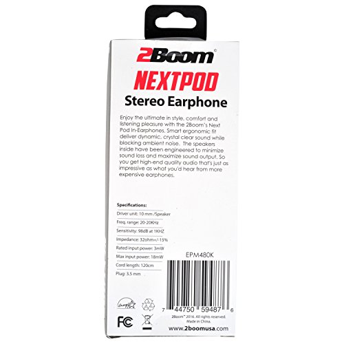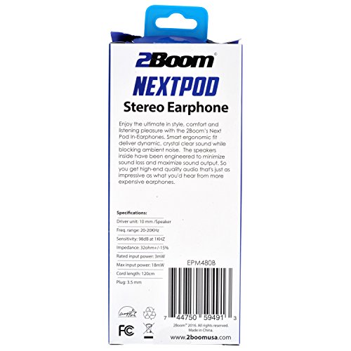 -. Title : 2BOOM Next Pod Wired Earbuds with Microphone and Volume Control