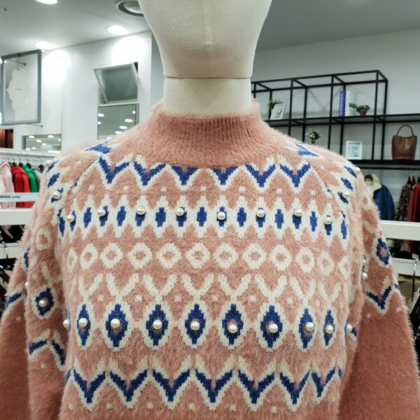 앙고라느낌의 진주알 장식이 포인트로 들어간 니트