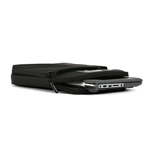 14" zip Sleeve. Impact resistant Memory foam. Durable exterior. Hideaway carry handle. Molded zipper pulls. ID pocket. Exterior pocket