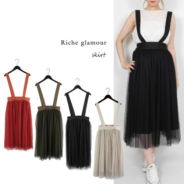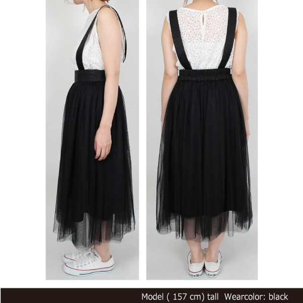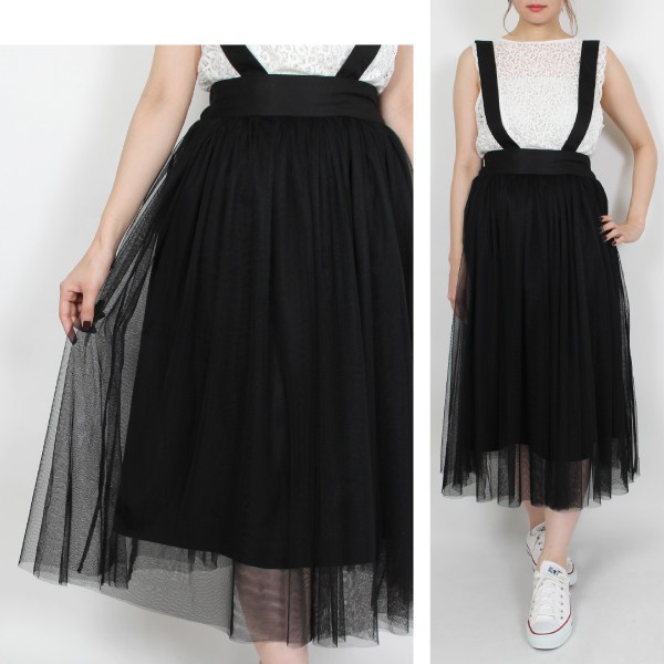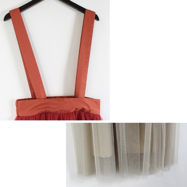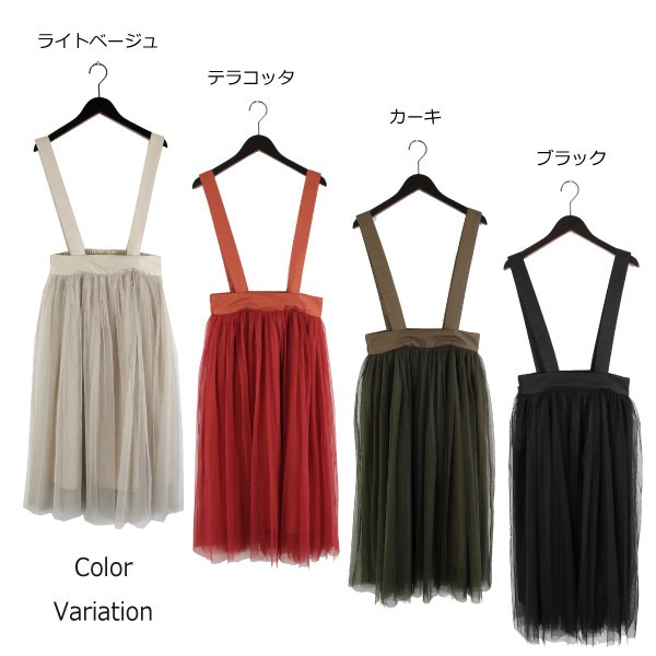 シルケットツイルxチュール サスペンダー付きスカート