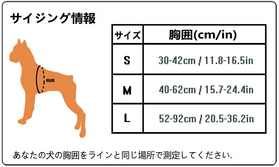 Size: L / chest circumference 52 ~ 92 cm In fact measure the bust of the pet, please choose the one that corresponds to the size.
