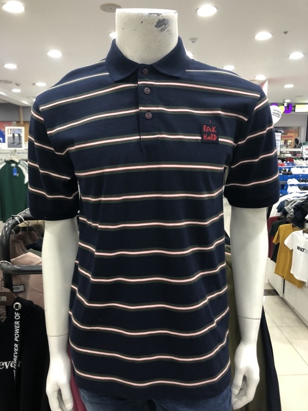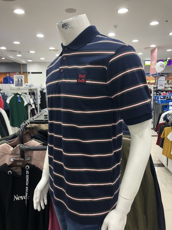 남)멀티스트라이프 싱글 넥티셔츠