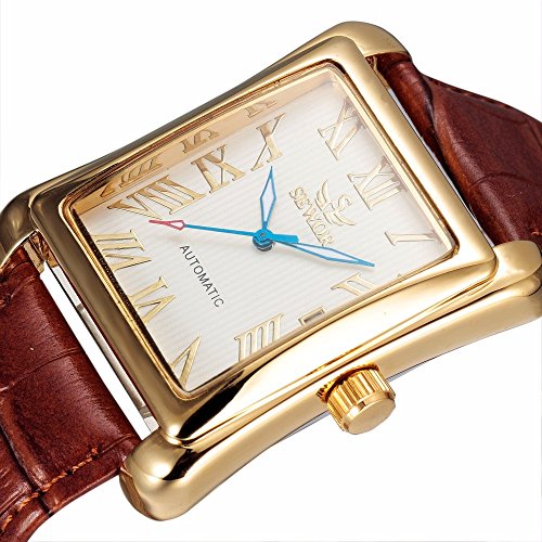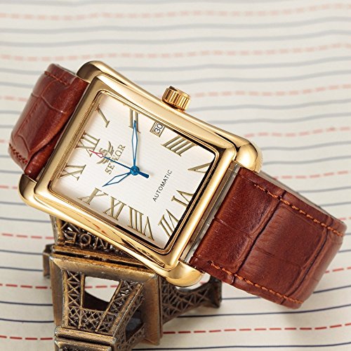 -. Title : Sewor メンズ腕時計ビジネス四角形図形革バンド自動機械式時計風の自己