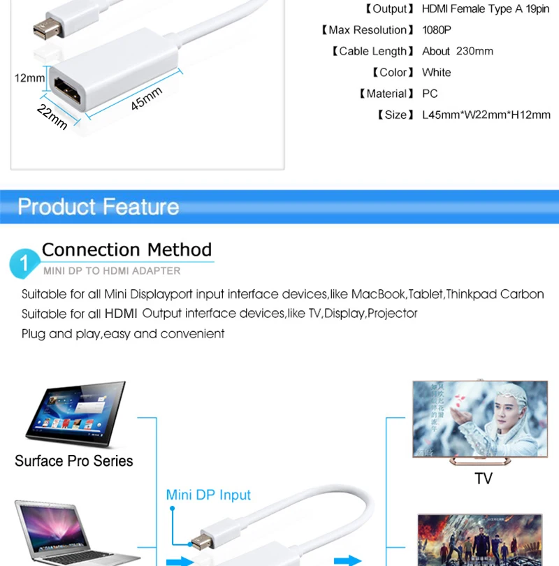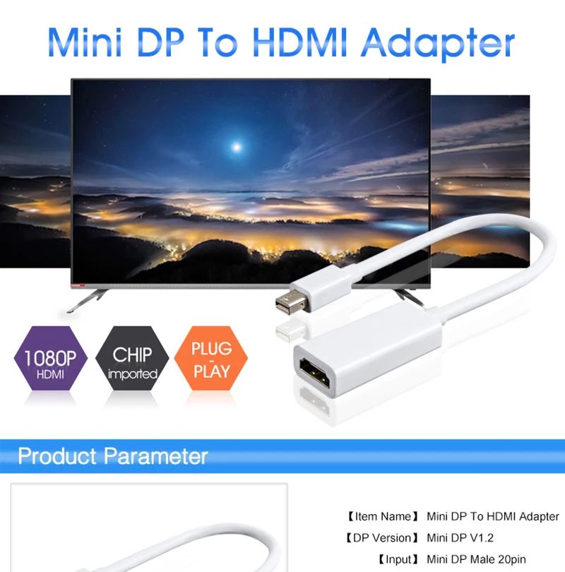 Type:Mini DP TO HDMI Adapter Cable