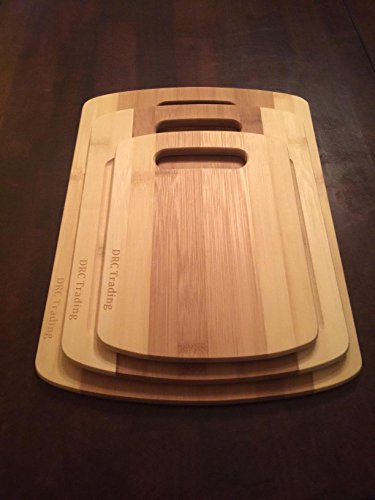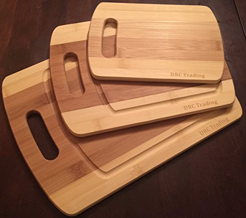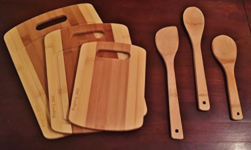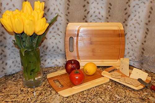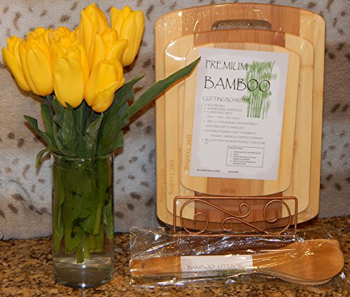 Bamboo cutting board 3 piece set with Bonus Utensils by DRC Trading- Meat and Veggie prep-cheese and cracker board-cocktail bar boards-juice groove -set of 2 different size Spoons and a Spatula