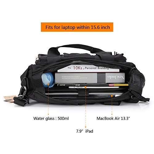Koolertron Pro- Multifunction Mens Military Tactical Outdoor Nylon Shoulder Messenger Bag Handbags Briefcase Large Enough for 15.6" Laptop/Sony/Canon/Nikon/Olympus/iPad (15.6", Black)