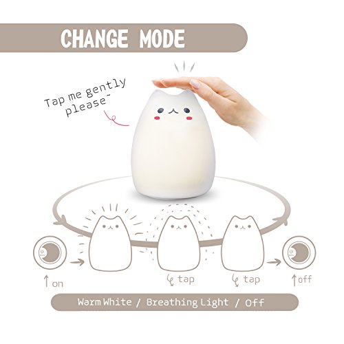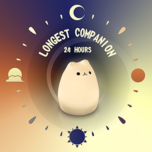 -. Feature : ♥Hallo,this is Moe♥ - I was made of toy-grade ABS+BPA-free Silicone,soft to touch,safe to play with. / ♥Longest Companion♥ - My energy can power【24 hours】 continues lighting,quick full recharge in 4 hours, provides all-night companion for your beloved kids. / ♥Unique Strengths♥ - I was born with 2 modes【Warm white and Breathing Light】,the unique breathing light is as kind of a mesmerizing affects which can help kids fall asleep. / ♥Tap Me Gently♥ - Change my mode with a single tap.Your kids can select his or her favorite mode by tap my body gently. / ♥Take Moe Home♥ - I will give just perfect lighting and security for your kids who are afraid of darkness while allowing light-sensitive parents to sleep well.